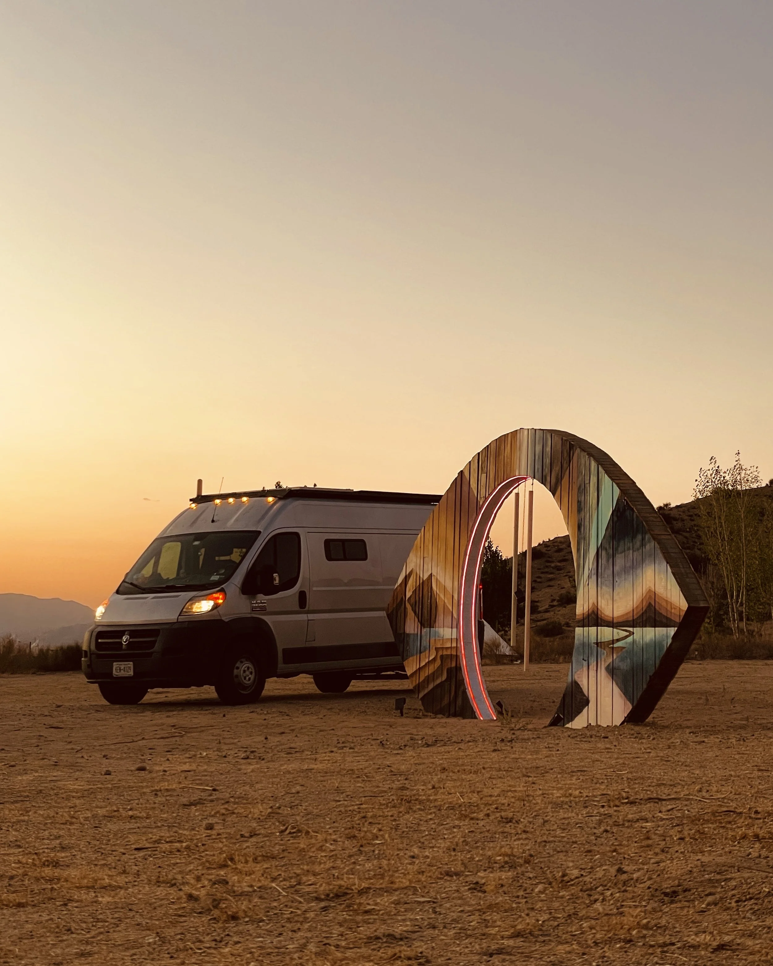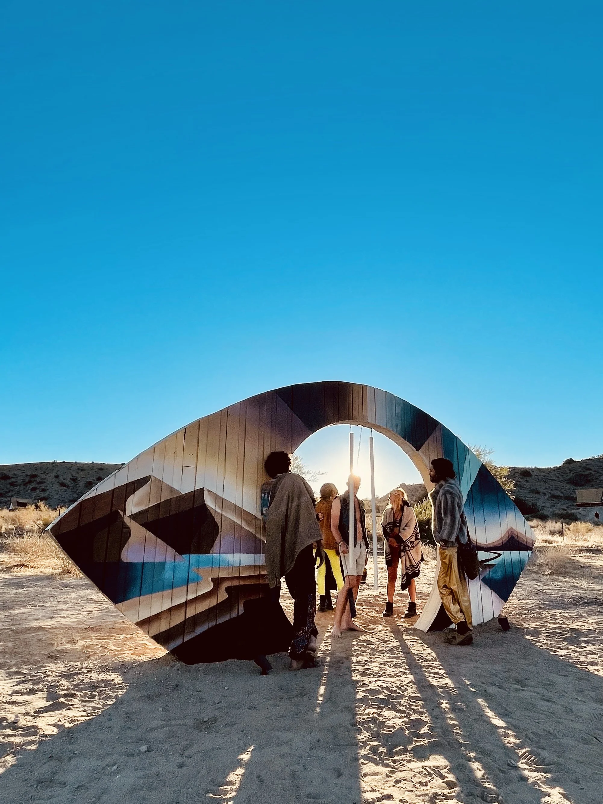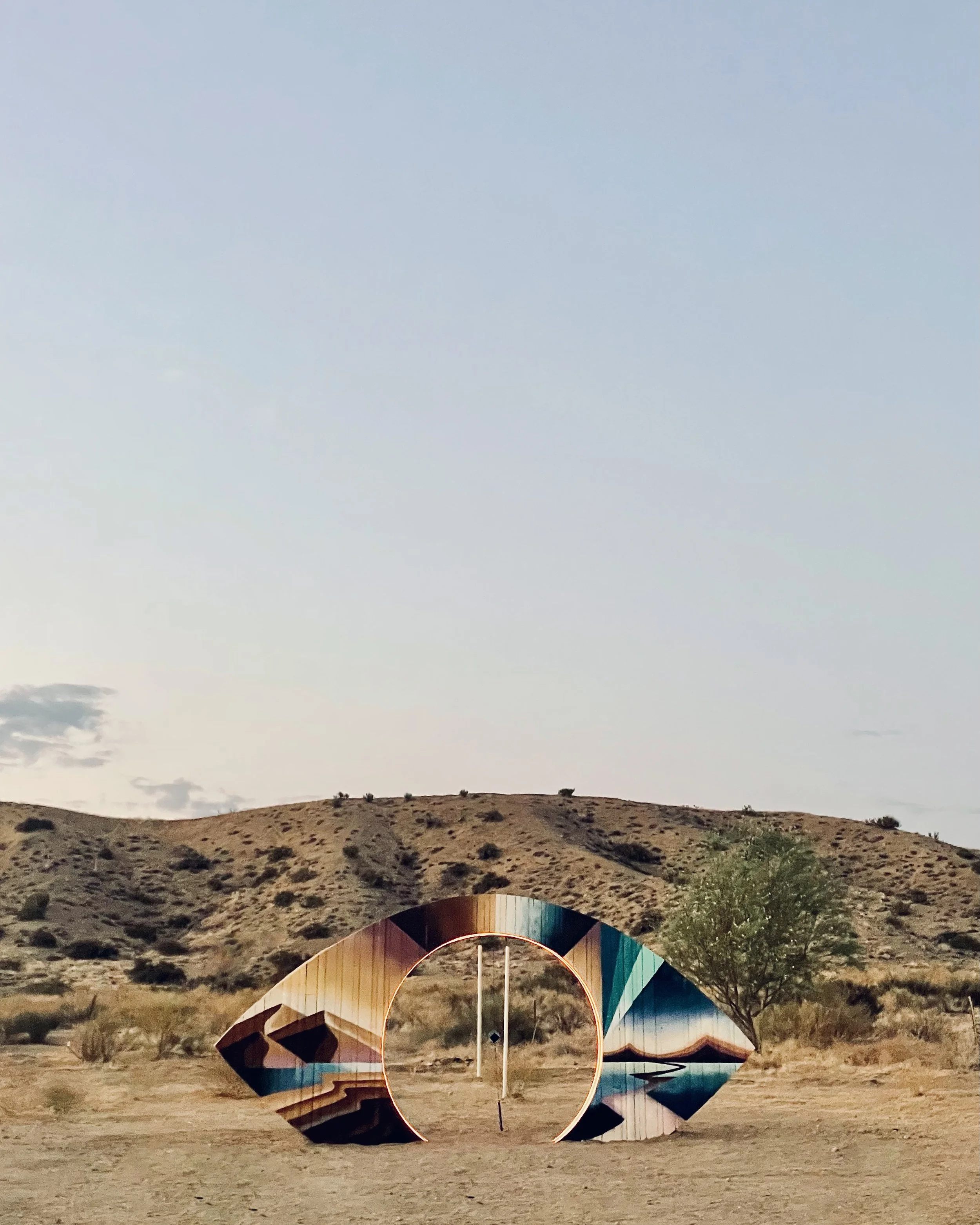 Look Know Further is a permanent sculpture that as was installed in the California high desert in a community event space as the center piece of the land. A point of reference that would remind the reason of why we are creating gatherings as communities